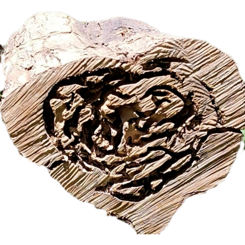 Uma escultura de madeira tem, numa ponta, duas peças lado a lado e, na outra, a forma natural de um coração. A imagem pode sugerir que dois, unidos pelo amor, criam um terceiro; ou, ao contrário, que só quem se ama completa e integralmente está pronto para se unir a outro. Resgatada de uma pilha de lenha, foi salva por carregar em si o símbolo do amor.