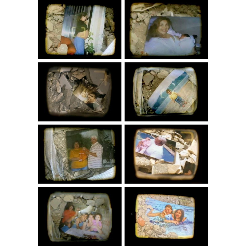 Para realizar a obra, foi preciso quase que voltar no tempo, recuperando fotografias de infância que estavam guardadas em álbuns esquecidos. Decidi também aproveitar os entulhos que restaram de uma reforma em casa. Posicionei as fotografias antigas sobre esses restos materiais e utilizei a mesma câmera analógica que meus pais usaram há quase 20 anos para registrar aquelas imagens. Como estava sem filme, fotografei o visor da câmera com o celular: uma justaposição entre o passado e o presente, entre o amor que foi vivido e o que permanece através da lembrança.